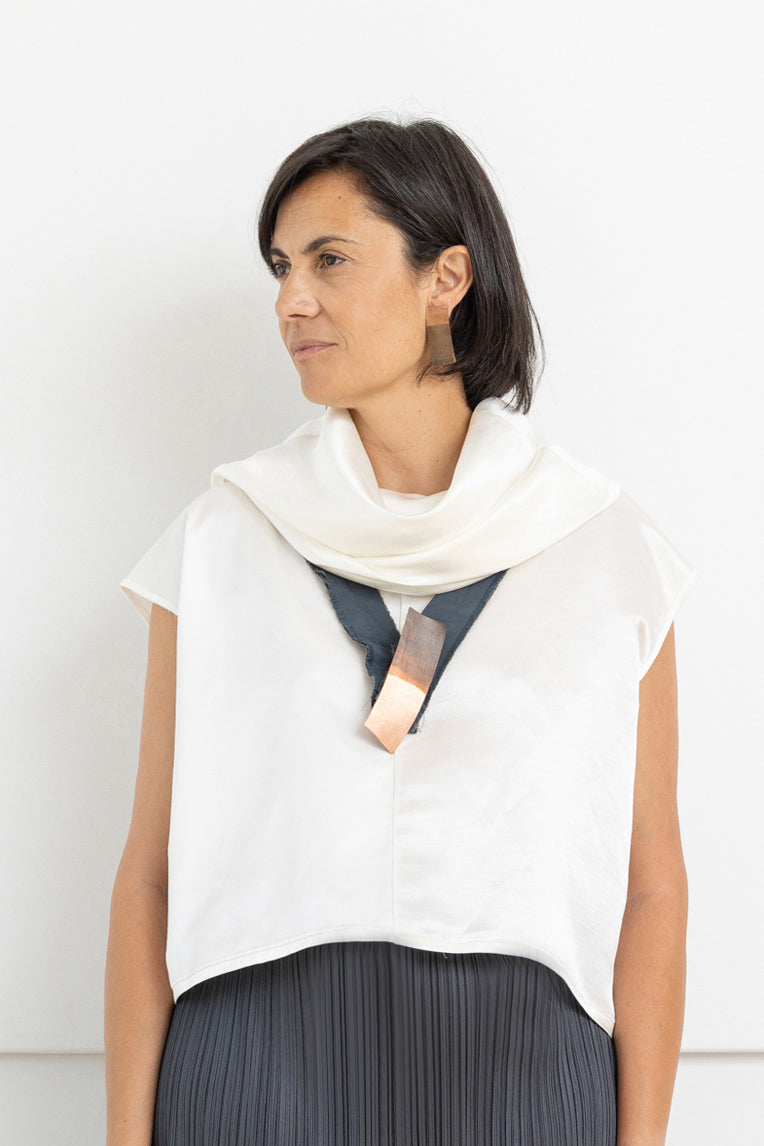 DESCRIPTION - Asymmetrical shirt made from high quality silk.- One part in solid color and...