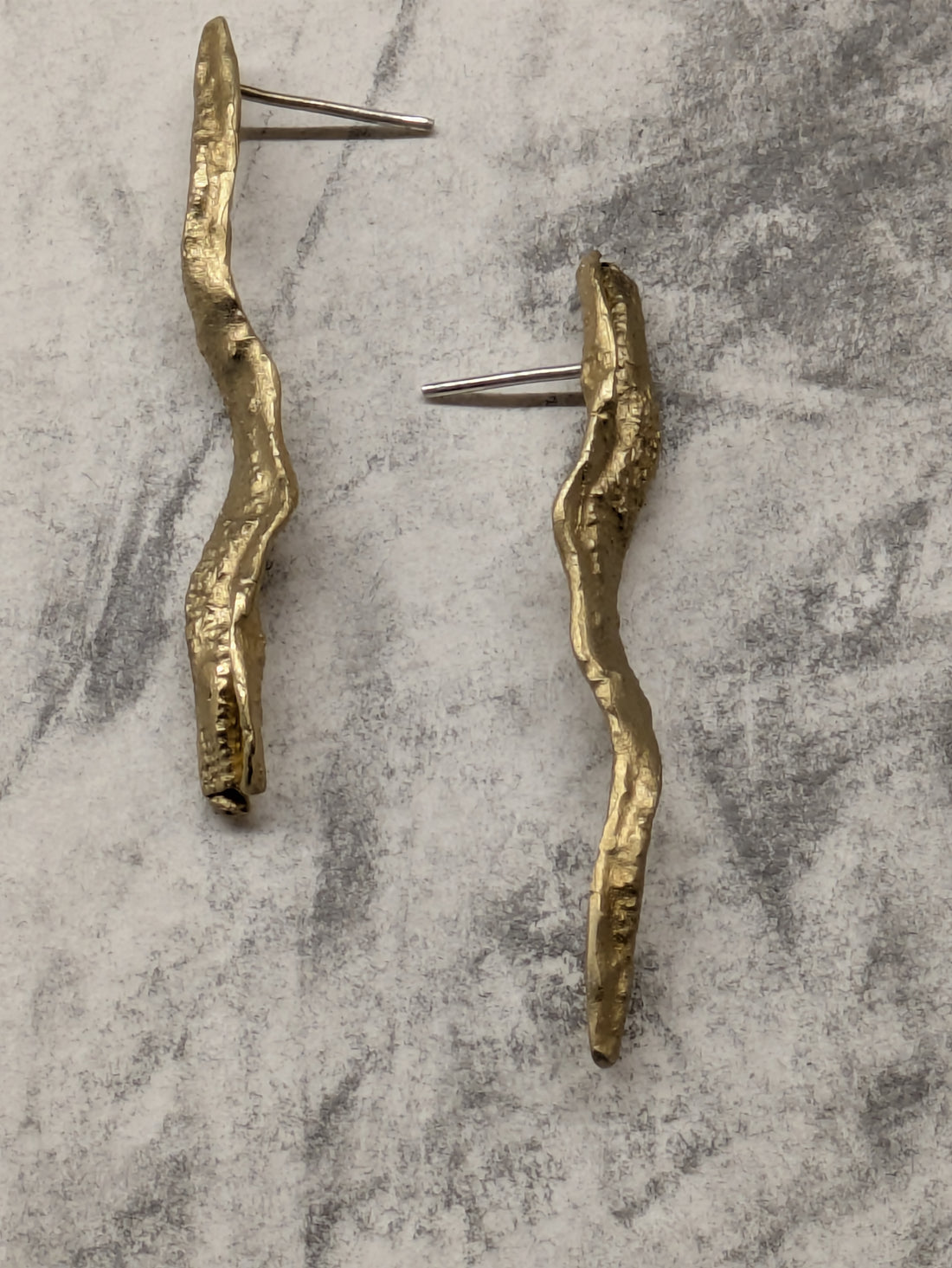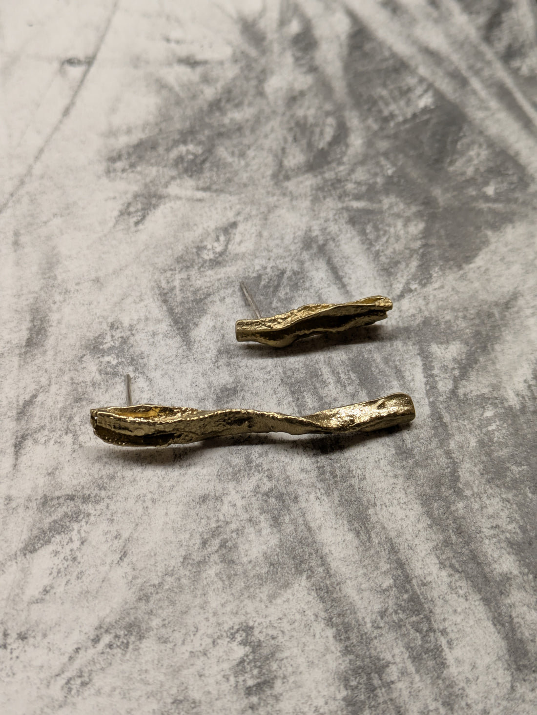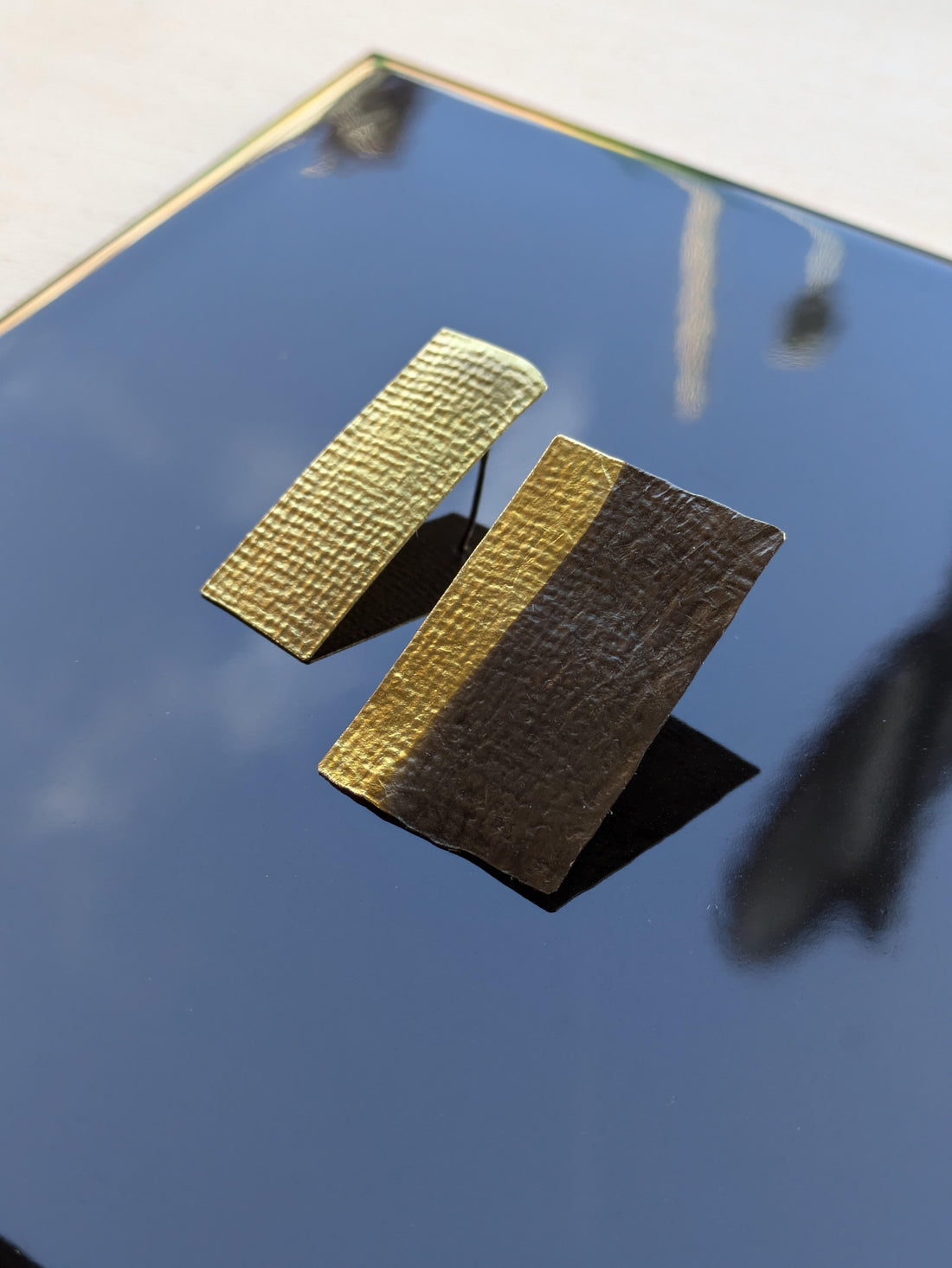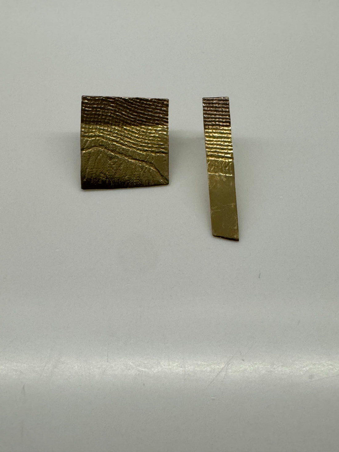 DESCRIPTION - Handmade earrings for pierced ears, crafted in golden brass with a rustic finish...