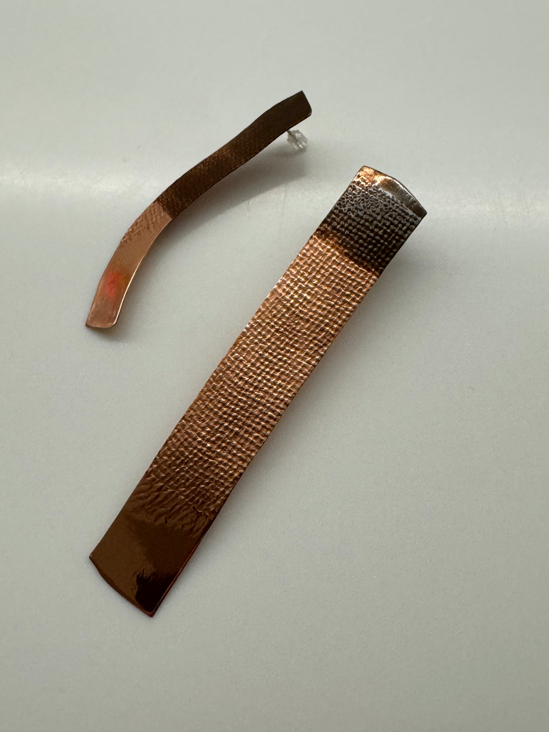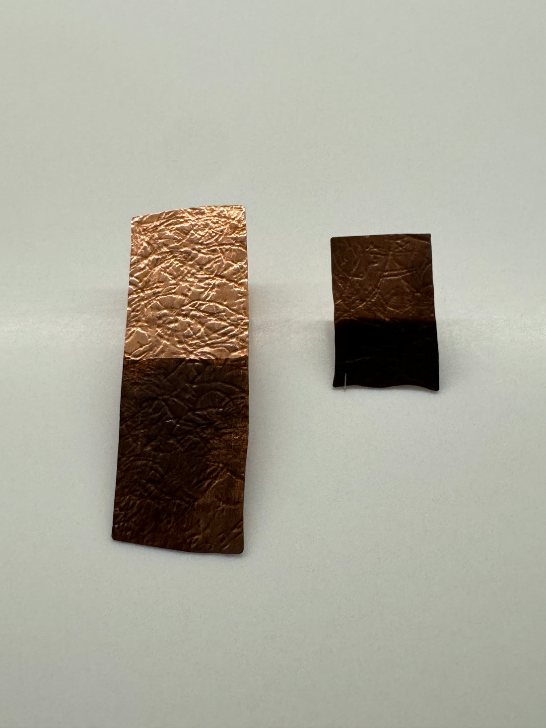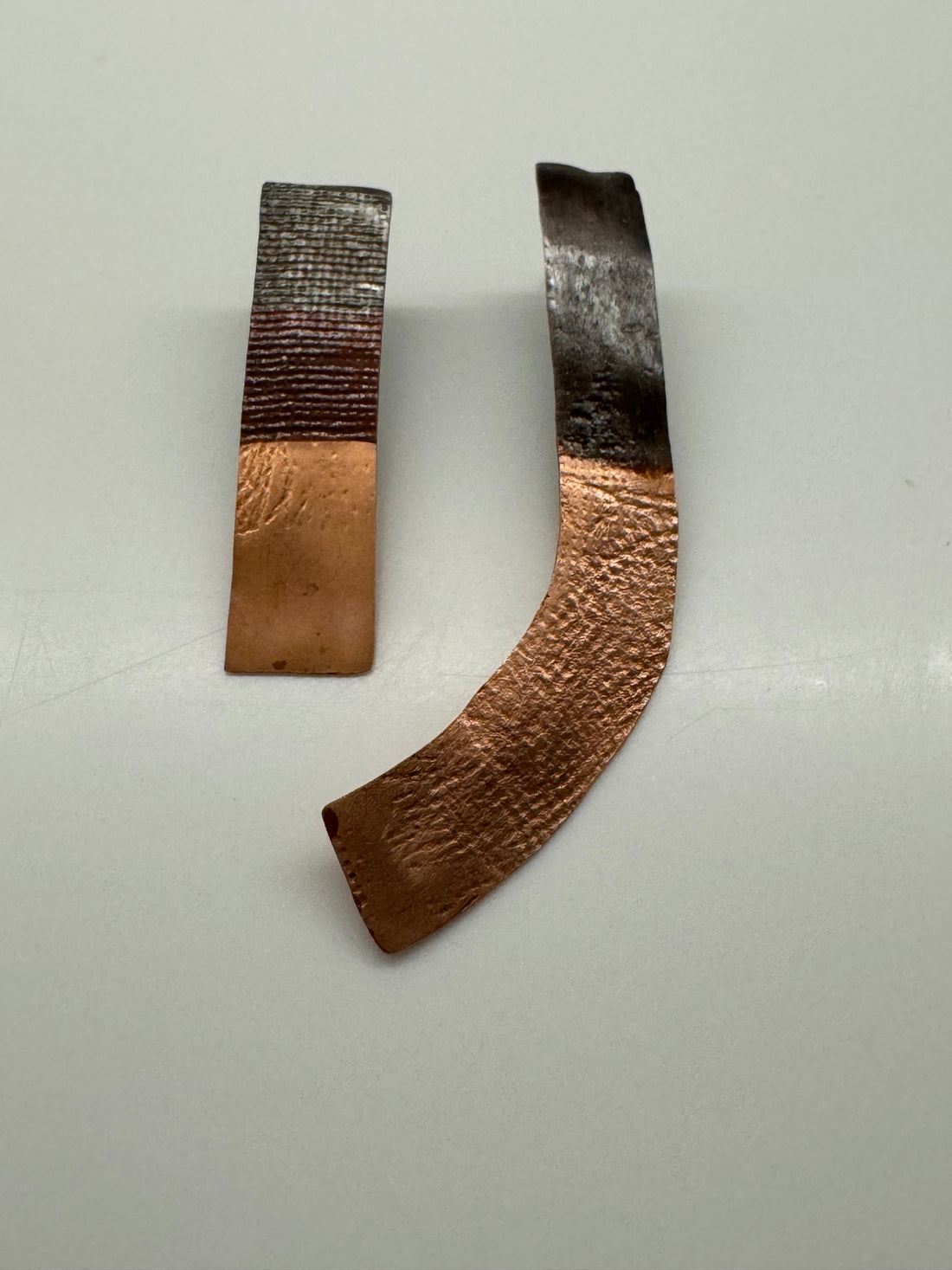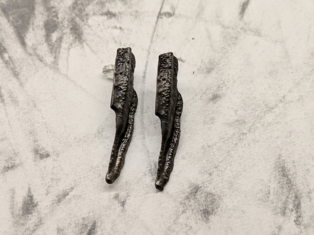 DESCRIPTION - Handmade long blackened brass earrings for pierced ears with hints of gold, featuring...