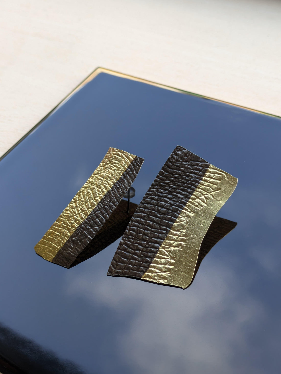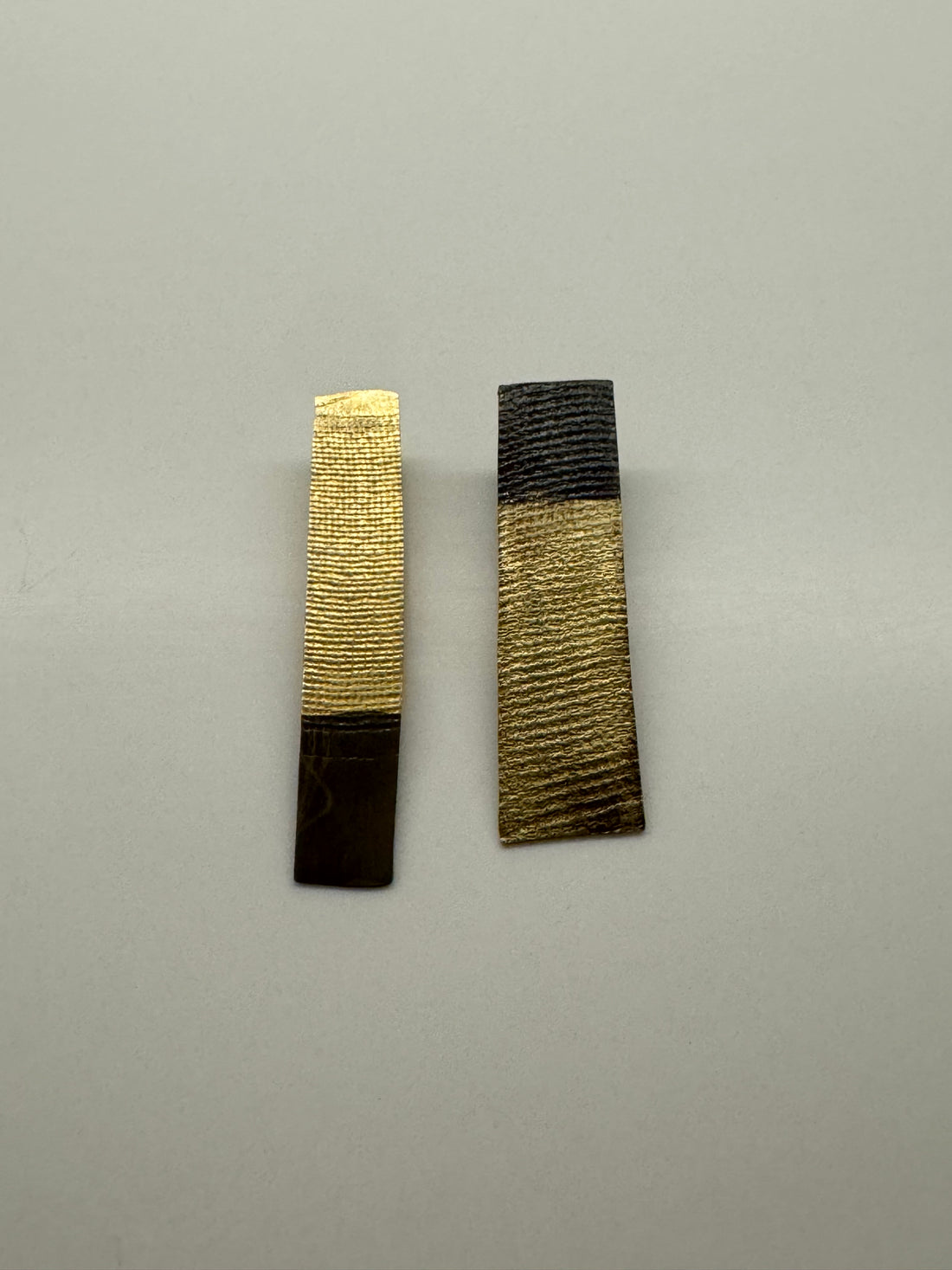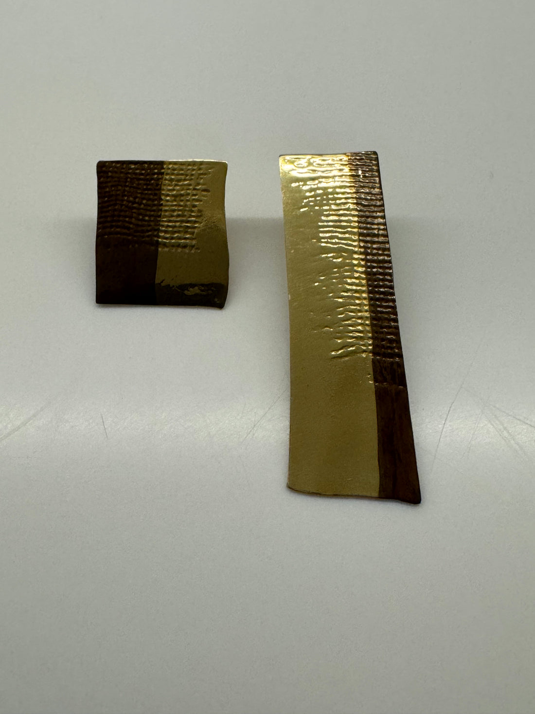 DESCRIPTION - Handmade blackened brass earrings for pierced ears with hints of gold, featuring a...