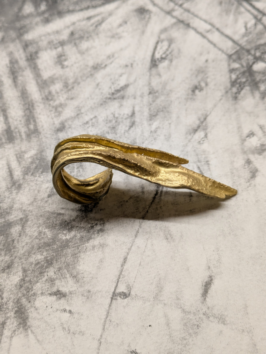 DESCRIPTION - Handmade brass ring in gold, featuring a rustic finish and an irregular texture....