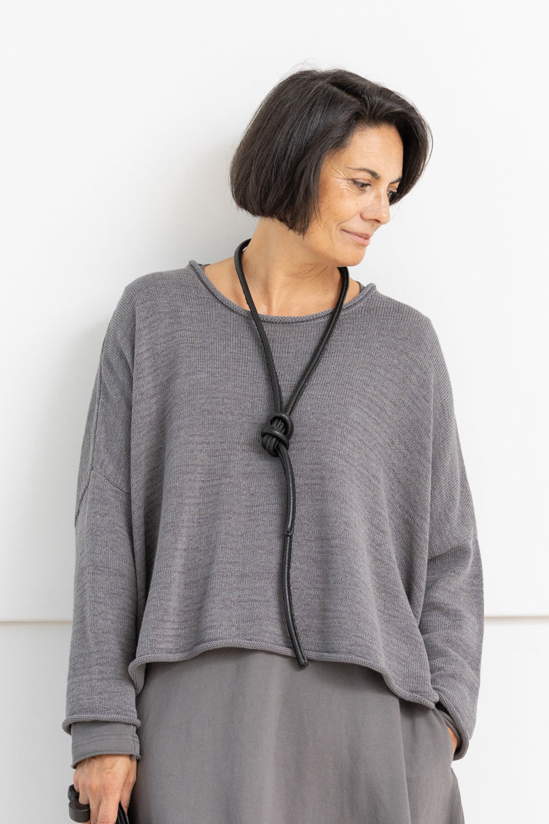 DESCRIPTION - Oversized top made from soft cotton in a grey tone.- Asymmetrical round neckline...