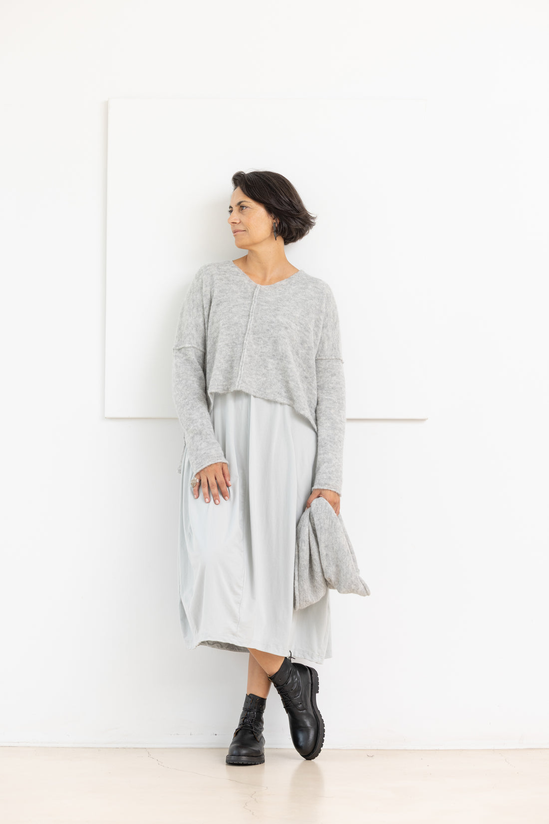 DESCRIPTION - Sweater made from an exquisite blend of Merino wool and cashmere in grey...
