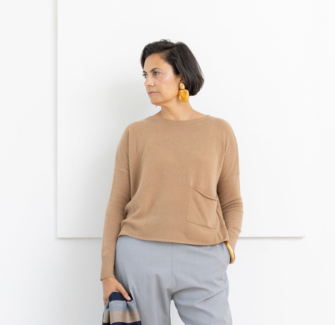 DESCRIPTION - Sweater made from an exquisite blend of Merino wool and cashmere in camel...