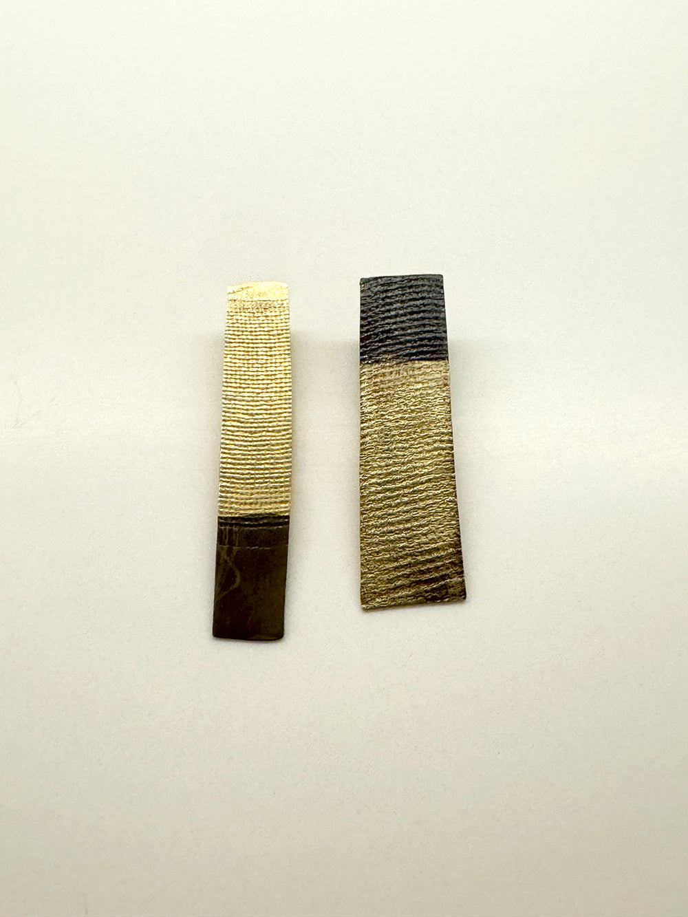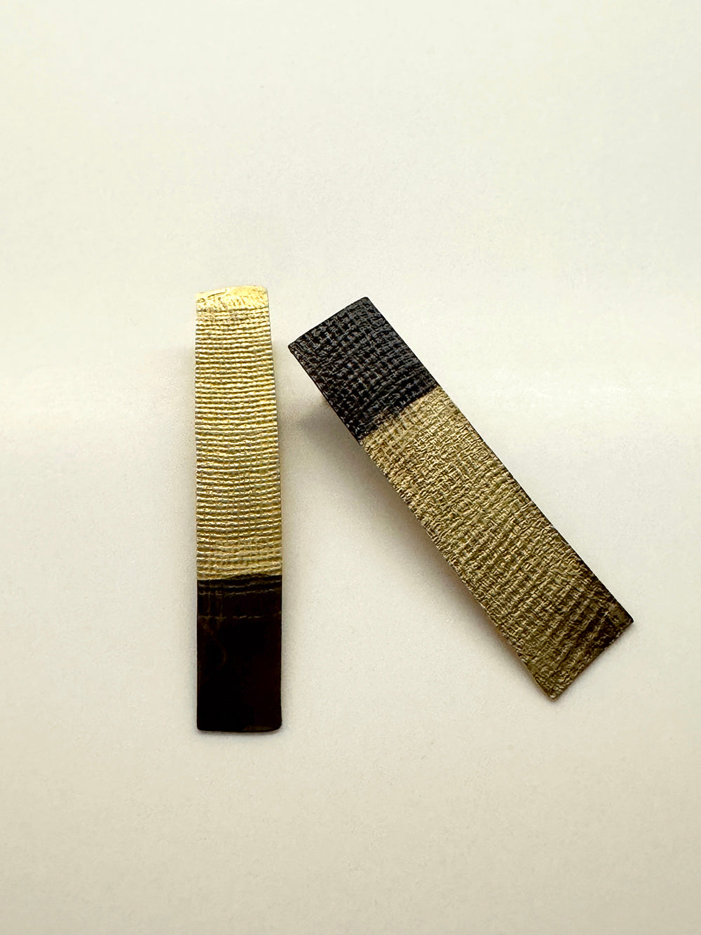 - Par de pendientes artesanales con un diseño audaz, fabricados y cortados a mano en latón oxidado.