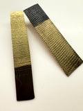 - Acabado de textura en bruto en la superficie, con tonos negros y dorados.