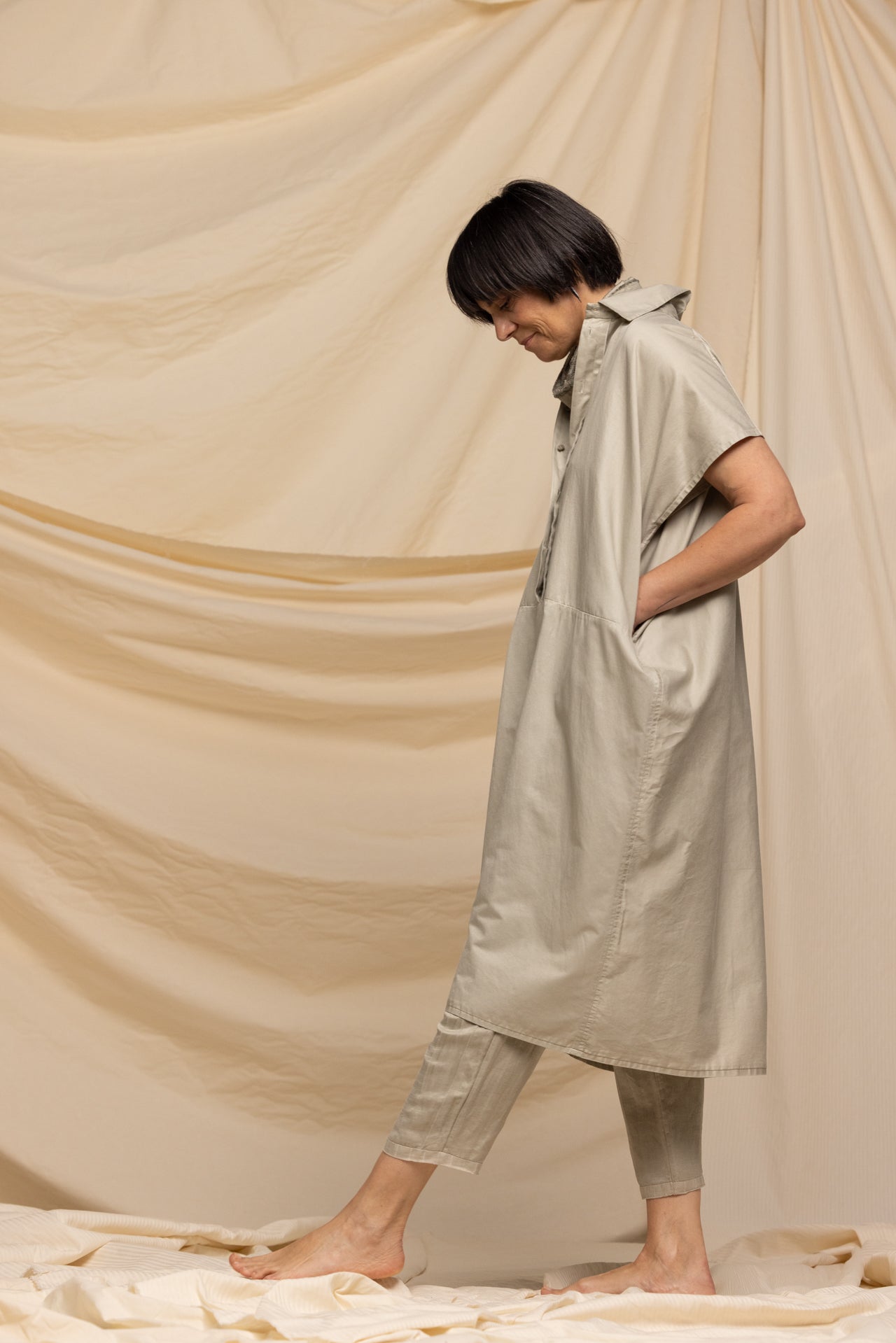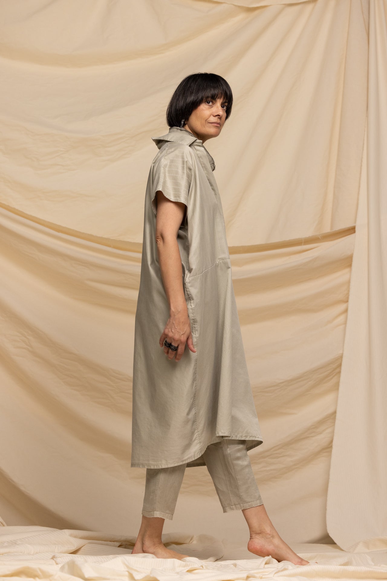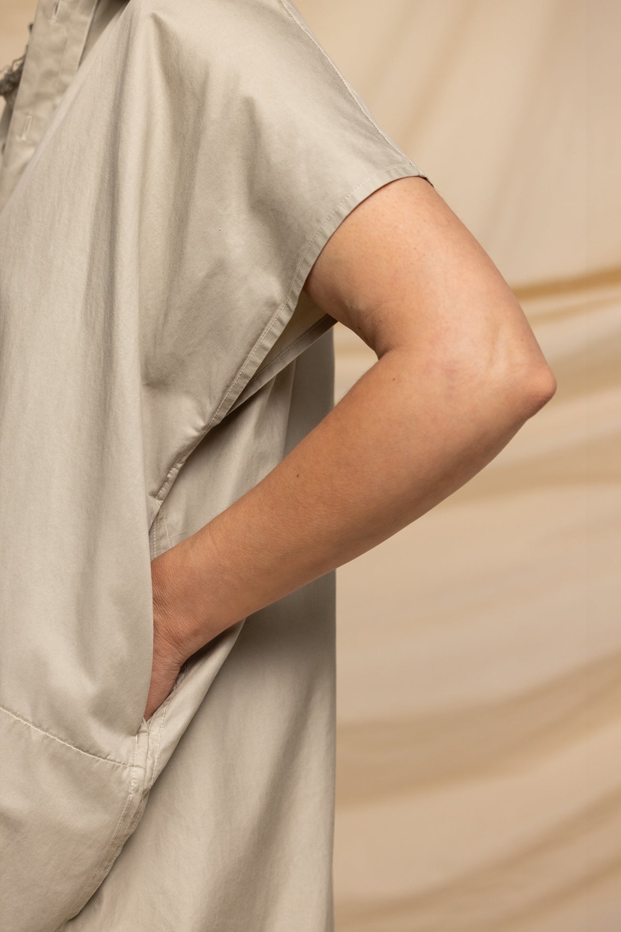 MIIYU SQUARED SHIRTDRESS TAUPE