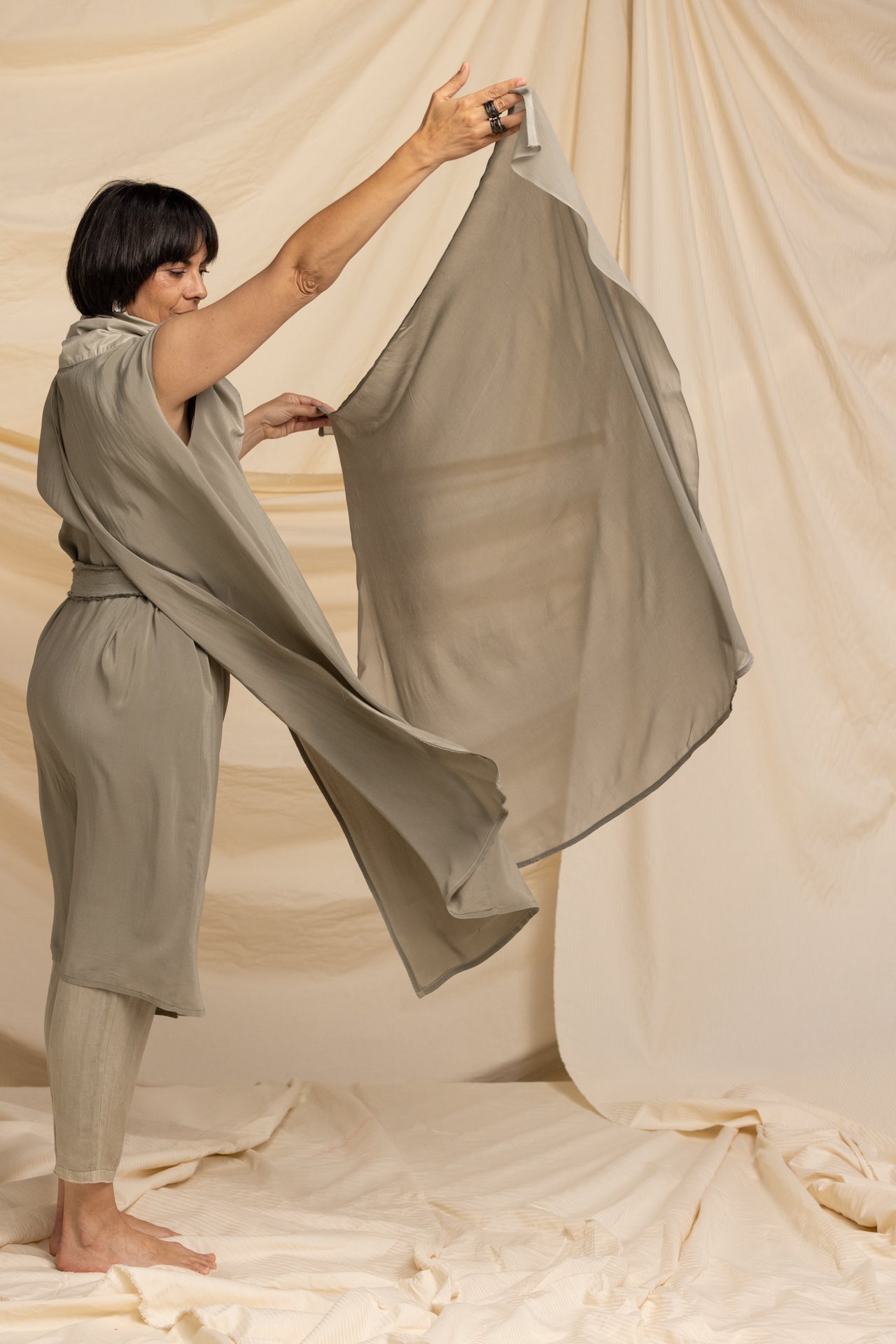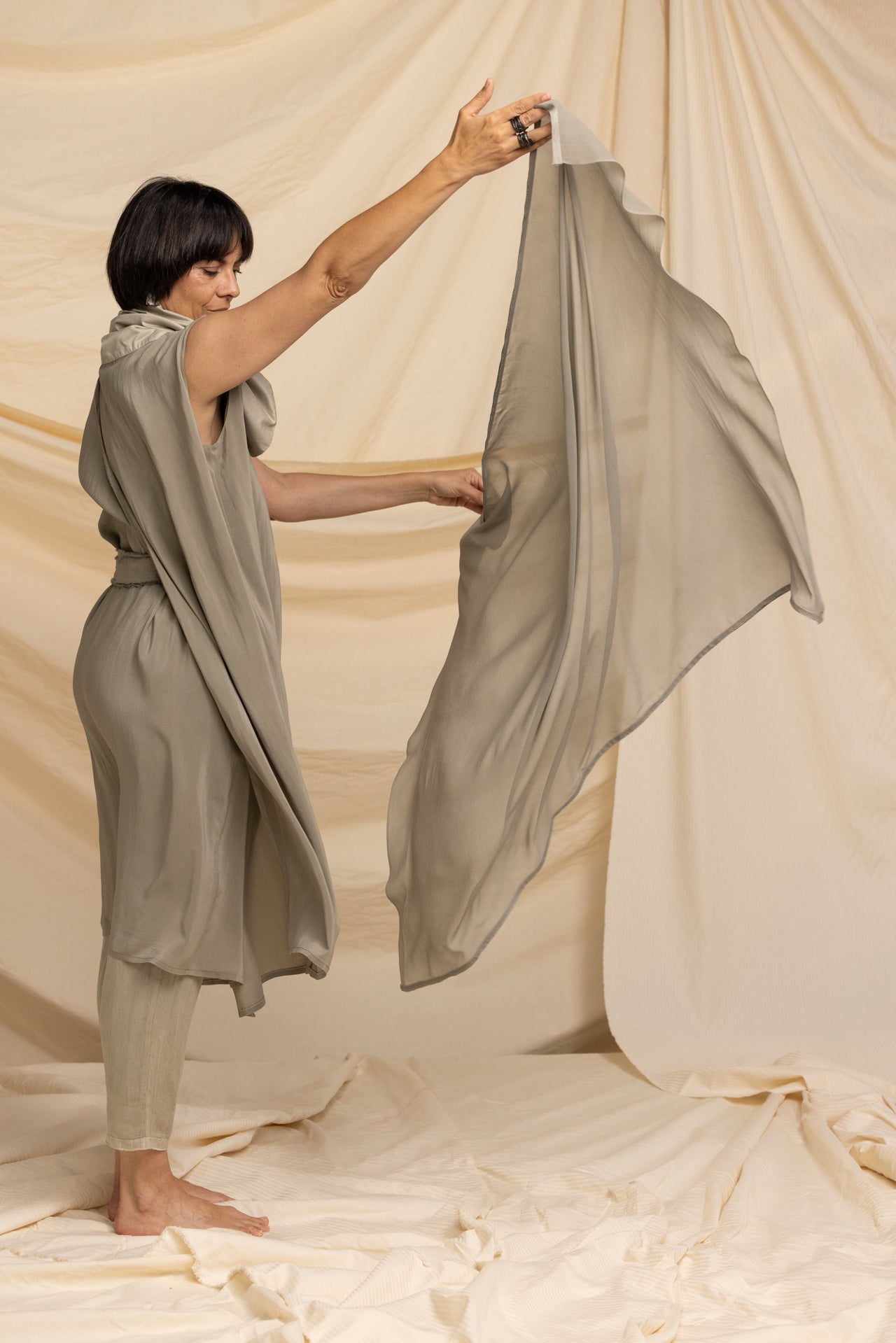 MIIYU SILK GEORGETTE SCARF TAUPE GREEN