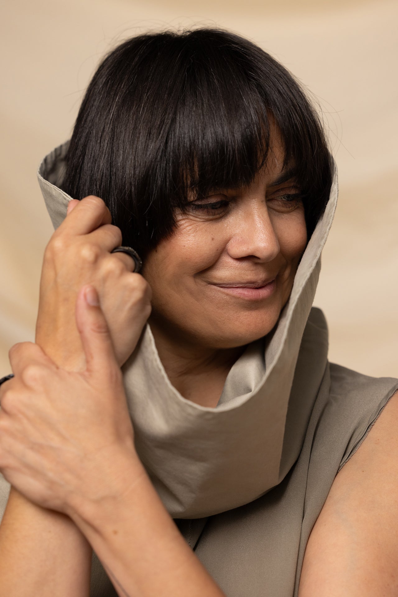 MIIYU SILK LAYER DRESS TAUPE
