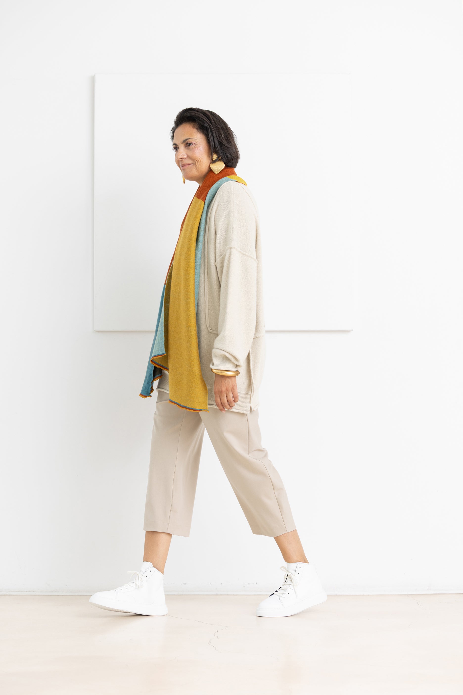 All of our pieces are unique. There are no size variations. See the model as a reference.