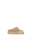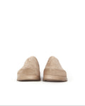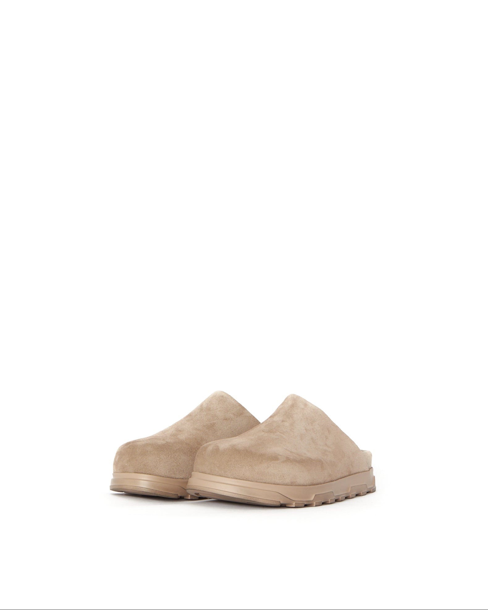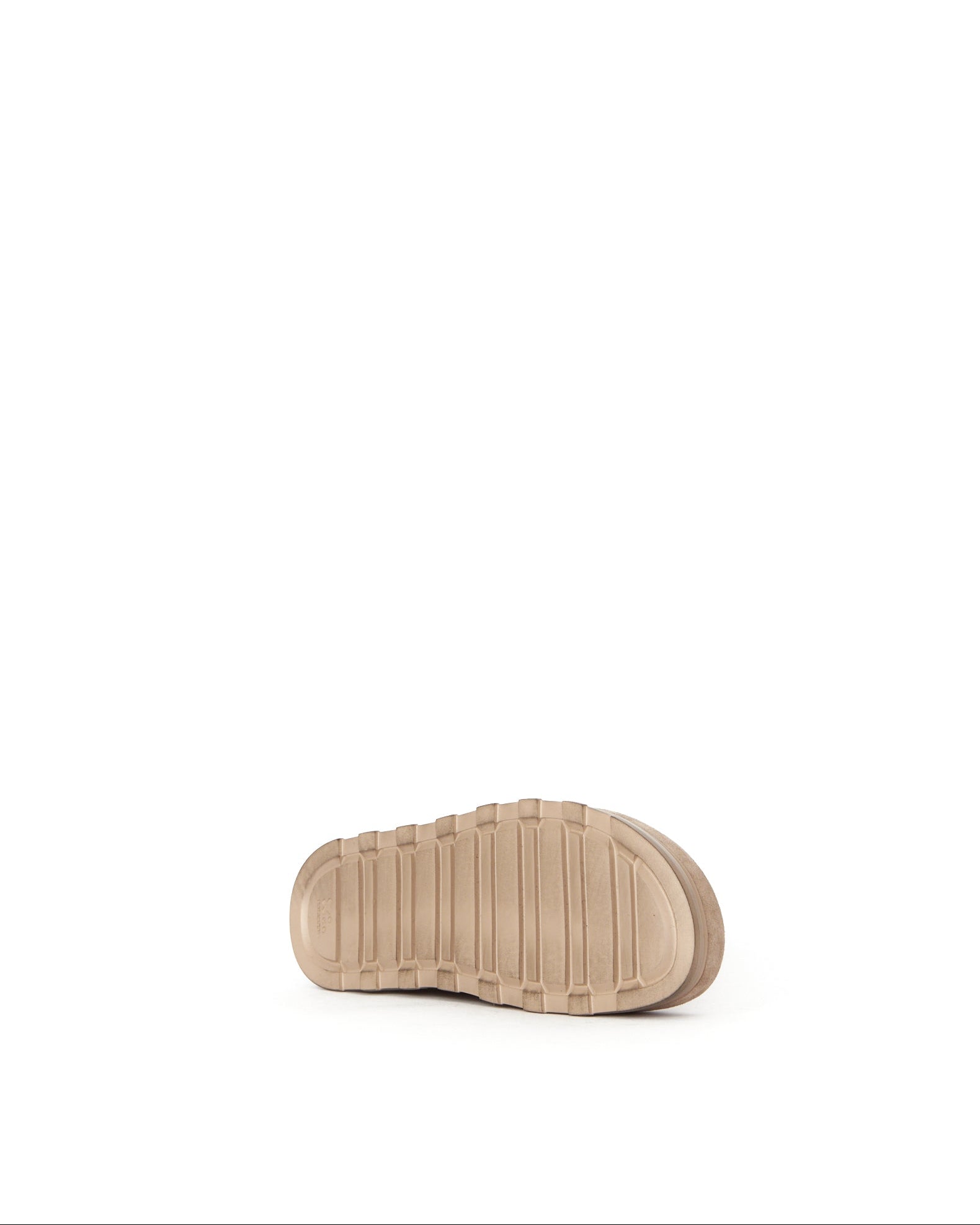 - Sandálias Slight On produzida com suave camurça de couro de bezerro em tom areia.