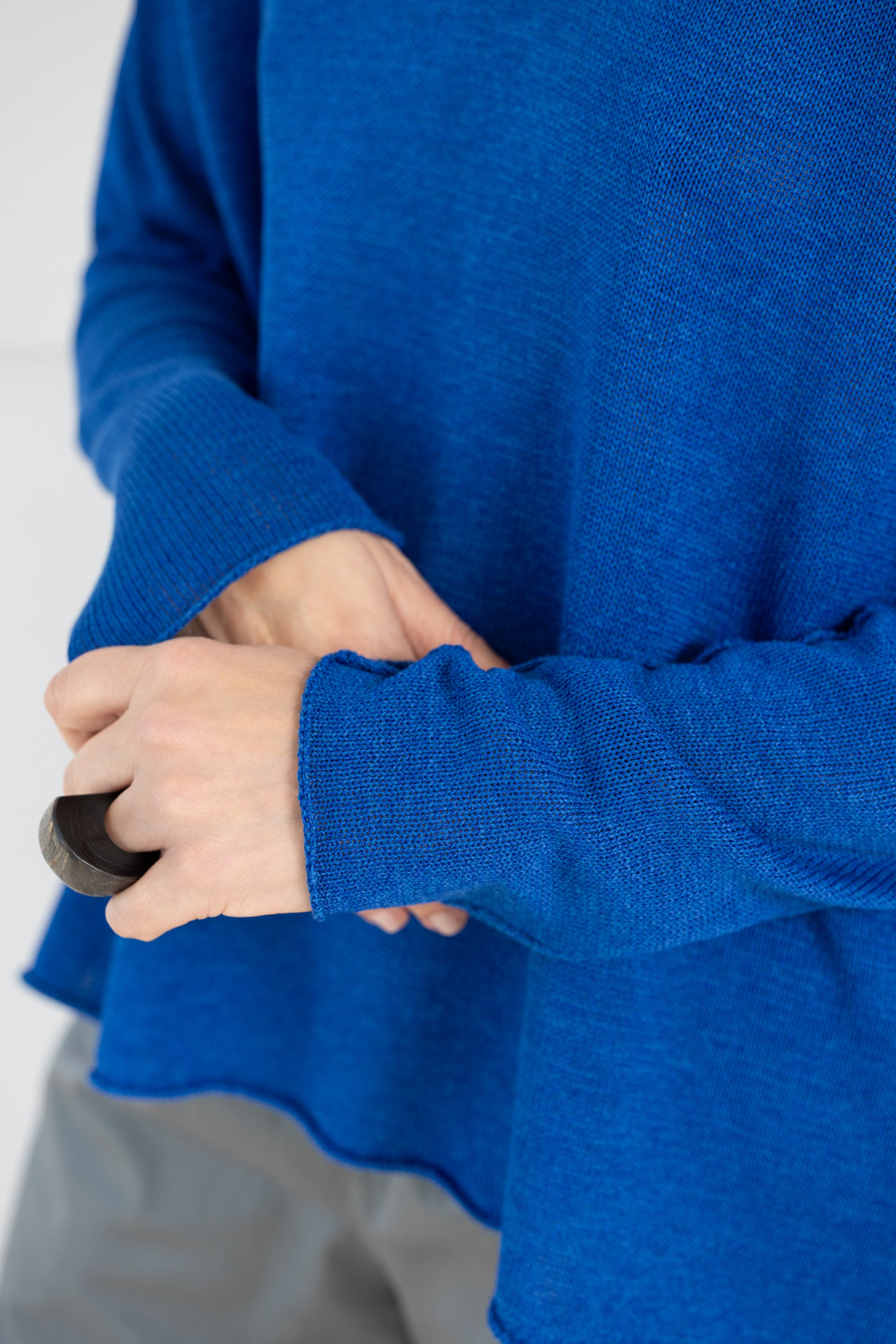 - Camisola oversized da coleção RUNDHOLZ MAINLINE produzida em malha macia com textura rústica em tom azul elétrico.